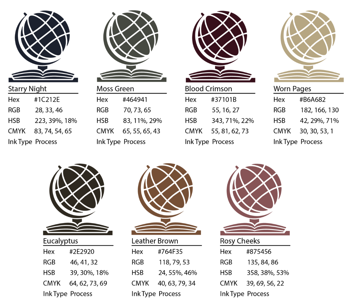 While there were many iterations of the logo, I eventually settled for imagery that shows a world globe atop of an open book. I wanted the pictogram to successfully stand alone, as well as with the wordmark. The font I used for the wordmark was altered to help better convey the idea of fantasy style vacations. Lasty, for the colors I wanted to do more muted and antique tones to tie in the idea of hardbound books.