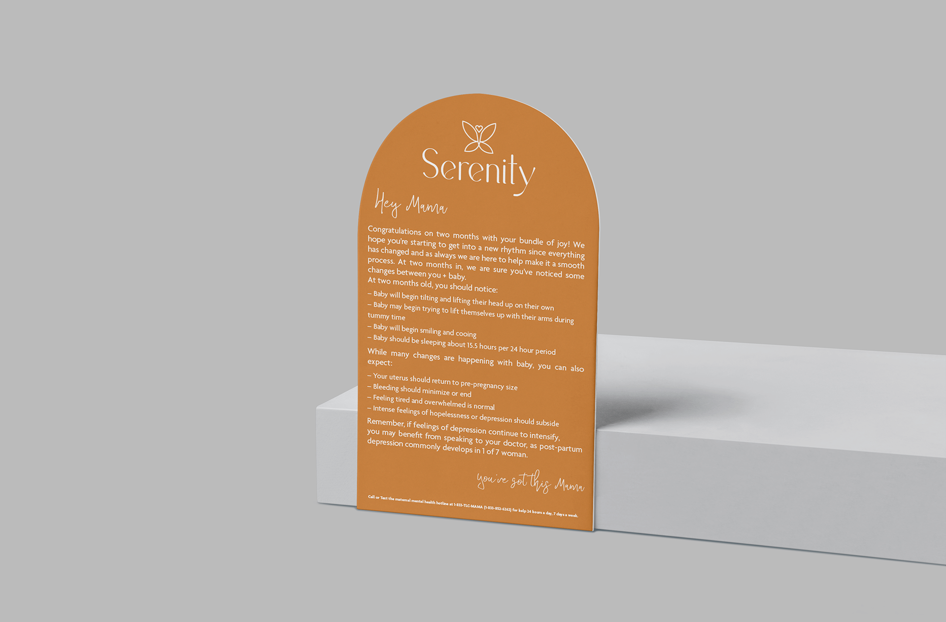 Becoming a new mother comes with a world of new emotions and feelings. With hormones fluctuating and responsibilities changing, we know things can get overwhelming. This is where Serenity comes in. Serenity is the subscription box for new mothers that helps you to navigate these challenges and help organize your emotions. With 1 in 7 women being known to develop postpartum depression, our goal is to energize and lift mothers to help prevent it.