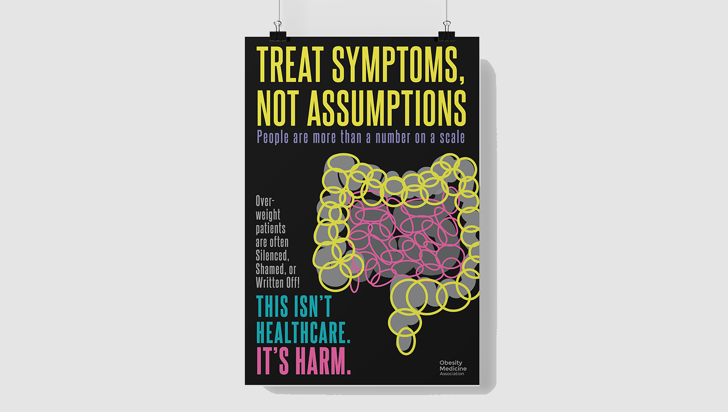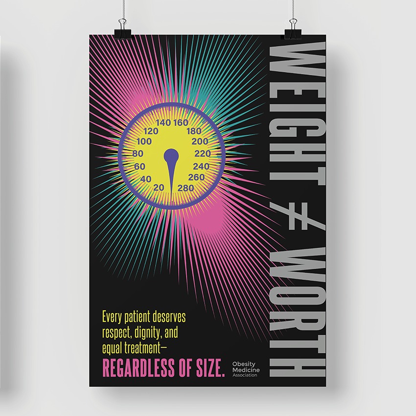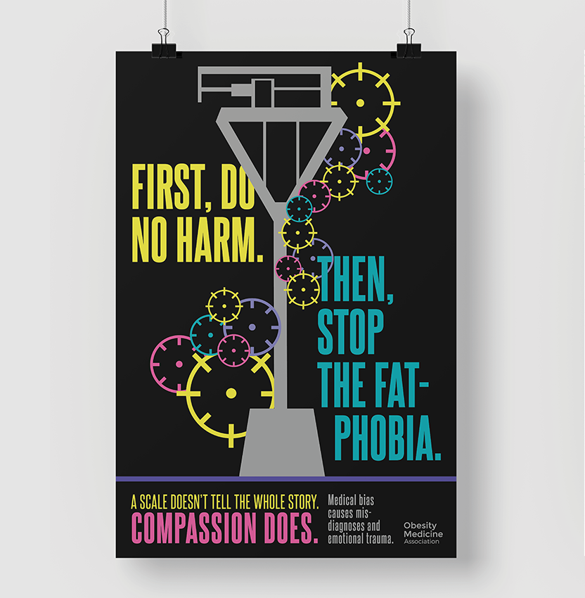 This series of posters confronts the idea of weight bias throughout the medical field, using imagery and typography that take inspiration from Yusaku Kamekura. Using controlled color and intentional typography, along with attention-grabbing taglines, this series is meant to bring to light the bias towards patients considered “unhealthy” and “overweight”. At its core, this series advocates for dignity, compassion, and equitable care for everybody.